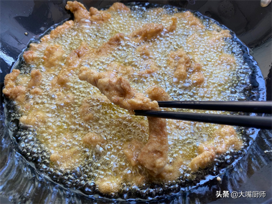 里脊肉、花椒粉、食盐、生抽、蚝油、鸡精、料酒、五香粉、葱、姜、脆皮糊。