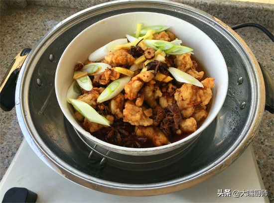 6、蒸锅加水烧开,把蒸碗上锅蒸40分钟,蒸酥肉就做好了,吃起来特别软烂。