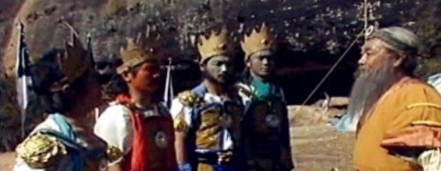 四大天王合起来就是“风调雨顺”。老百姓有个说法:增长天王拿着宝剑有“锋”,谐音“风”;广目天王拿着琵琶,需要“调”弦;多闻天王手持“雨”伞;持国天王拿着花狐貂,毛是“顺”的,所以是风调雨顺。注意,《封神演义》里四大天王与法宝的对应关系,同佛教中的说法略有不同,应该是作者的一个小小笔误。