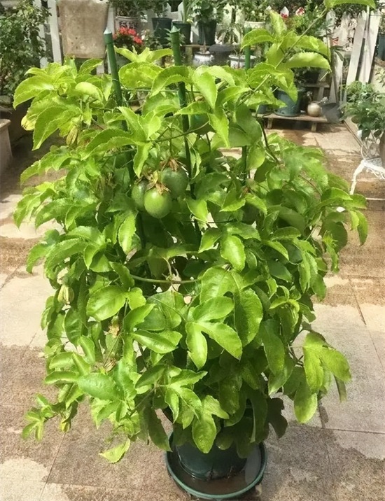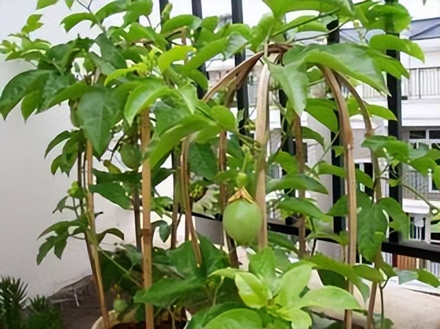 百香果是属于藤本植物,无论是地栽还是盆栽都要搭架,如果直接种到花盆里,它的枝条长长了垂下来以后生长性能就会减弱,枝条比花盆表面都要矮的话,开花结果的几率就会大大的减少。所以一般百香果栽种上,看着枝条长势比较快,做好支架,枝条长长了以后没有开花结果的位置就把它盘到架子的底部,开花结果了以后再去挂到架子的外部,这样就能够持续长持续开。
