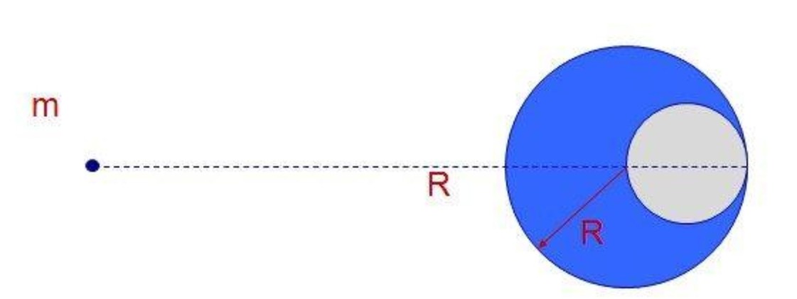 显然,整个球体对质点的万有引力为直接应用万有引力定律直接计算的,补上去部分(灰色部分)也可以直接应用万有引力定律计算的,二者相减就可以知道剩下不规则部分对质点的万有引力了。