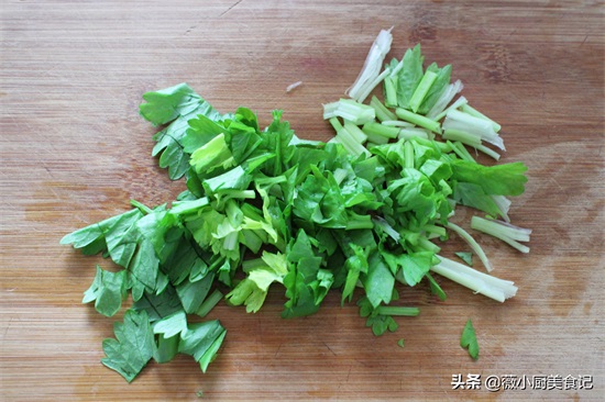3. 香芹摘除腐烂叶子,洗干净切末。