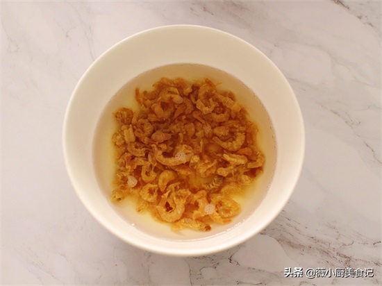1. 虾米洗干净浸泡5-10分钟,沥干水分备用。
