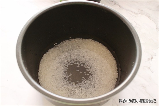 4. 大米洗净通常洗两遍就可以了,现在的大米基本上什么杂质,倒入高压锅中浸泡半小时。