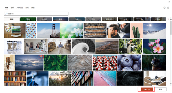 勾选“图片或纹理填充”后,单击“图片源——插入”,在弹窗内选择图片源位置,如“来自文件”,即电脑本地图片;“图像集”,即Microsoft 365提供的丰富图片库;“联机图片”,即通过One Drive共享的图片资源。这里我们使用Microsoft 365提供的图片库(如图3)。