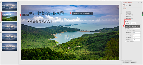 首先,于左侧选中幻灯片。然后,右键幻灯片,单击“设置背景格式”,单击“图片源——插入”,重复图2、图3步骤,便可单独更换ppt背景图片了。