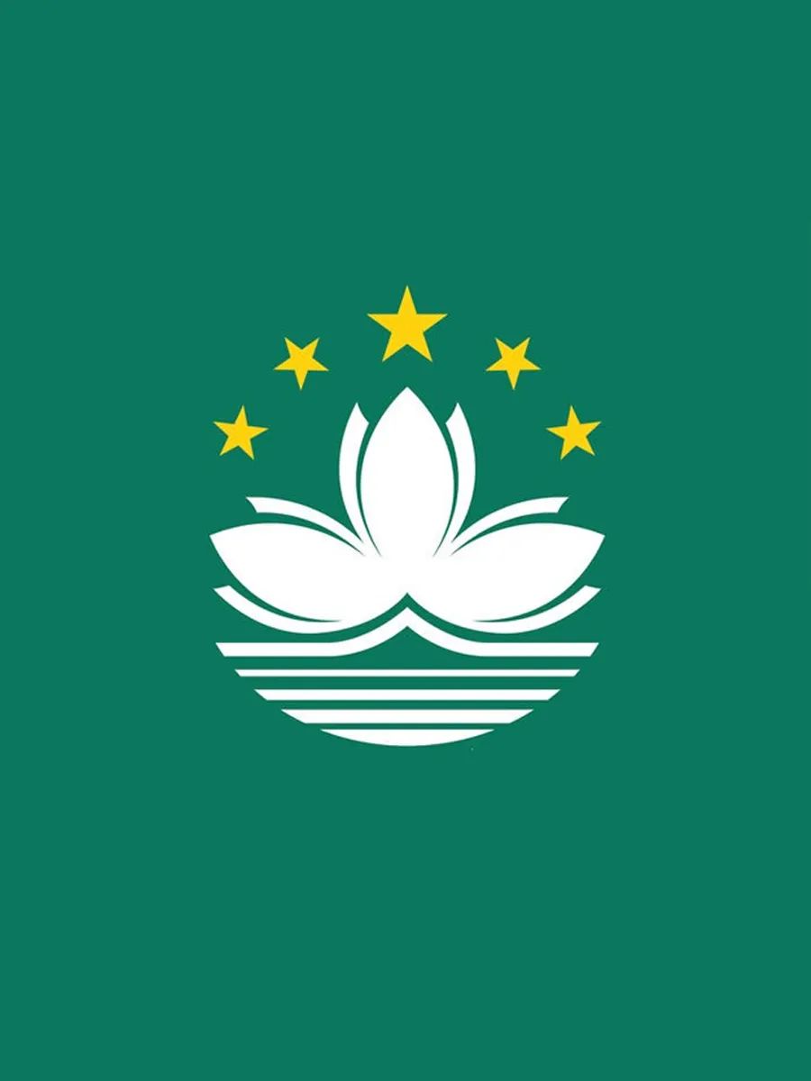 澳门的区旗为五星莲花绿旗。绿色的底色象征着和平与安宁,寓意澳门四周是中国的领海;五星象征着国家的统一;莲花寓意着澳门的繁荣发展。