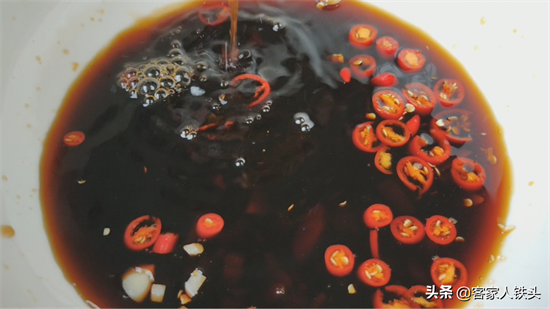 第四步:切一点蒜粒,辣椒圈,喜欢吃辣的可以多切点,切好放入大碗中,加入适量的白糖,喜欢甜的放多一点,再加生抽,半瓶的陈醋,还有半碗凉白开,然后把糖搅化,搅化后放一边备用。