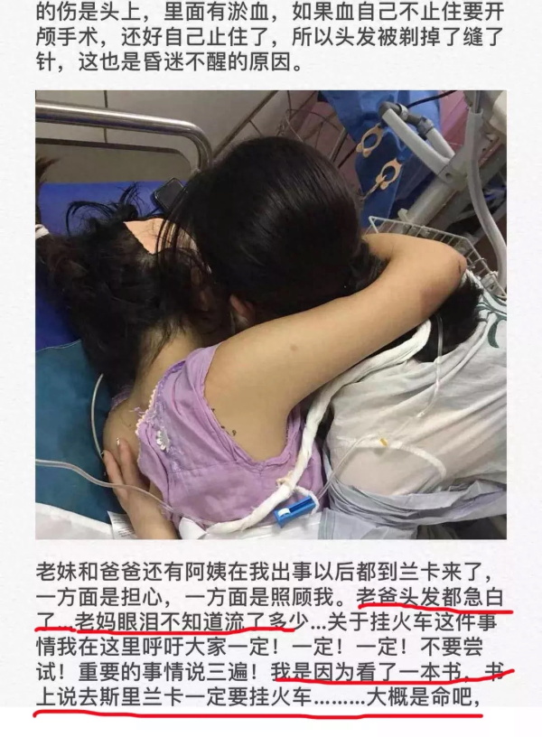 2018年2月,一个中国女游客就在美美拍“挂火车”照的时候,不慎失手跌落,头部受到重创。被紧急送往医院之后,她在ICU昏迷了7天,颅内淤血。