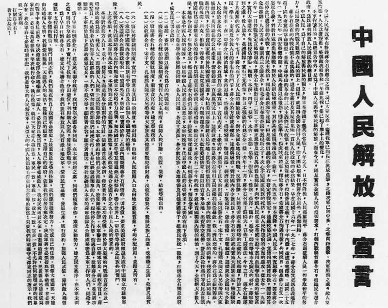 1946年内战全面爆发,中共中央在《解放日报》上第一次公开使用了中国人民解放军的称谓。自此向全国人民昭示着,以后中国军队将以“解放军”为主要称谓出现。