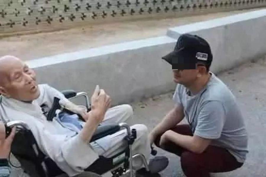 他去到部队大院中去探望抗战老兵,并且先后拍了5部短片致敬老兵。