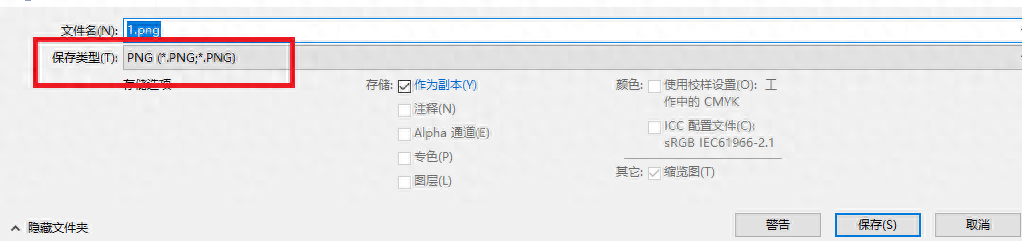 选择【保存类型】为“png”格式即可。