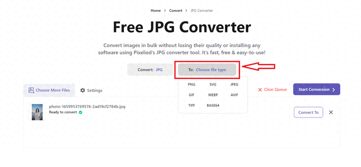 点击【choose files】导入图片,可以批量上传图片进行转换。