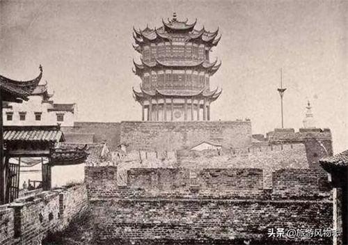再说位于湖北省武汉市的黄鹤楼,该楼雄踞长江之滨,蛇山之首,其气势磅礴,一览武汉三镇风光,尽收眼底,不过,据有关资料显示,原来的黄鹤楼,并不在蛇山,而是在城台上,特别是宋朝时期,到了清朝同治七年的时候,又重建黄鹤楼,其高踞城垣之上,外观三层,内则九层,高约32米,现有旧时照片,可做参考。