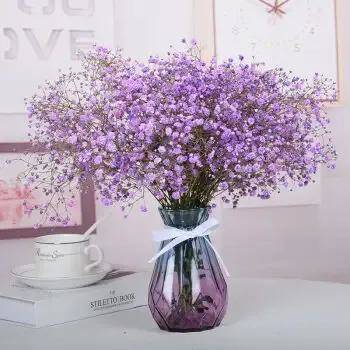 紫色满天星代表的花语含义是思念。无论是自己的至亲之人还是人生益友,那怕是异地很久好久不见的恋人,都可以赠送紫色满天星来表达自己的思念相思之情。单个紫色太单调,可混合其他花朵一起赠送。