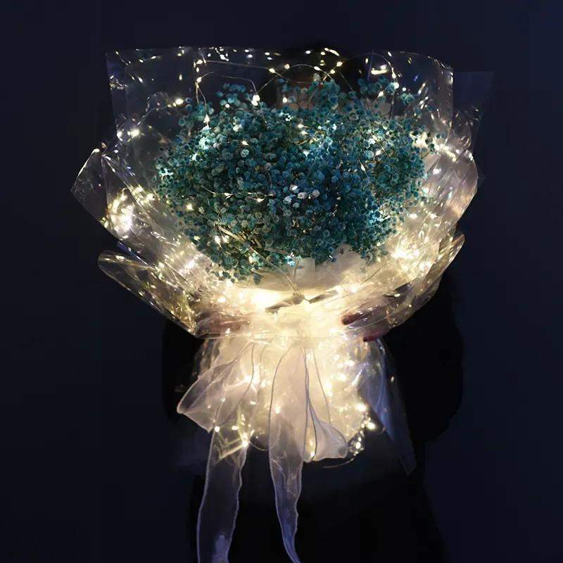 蓝色满天星象征的花语含义是青春和温柔,多用来表达学生时代的友情,以及同窗多年或一起工作学习的难忘之情。若送给多年好友,则代表着思念之意。另外,蓝色满天星还能够表示“真心喜欢你”的花语含义。