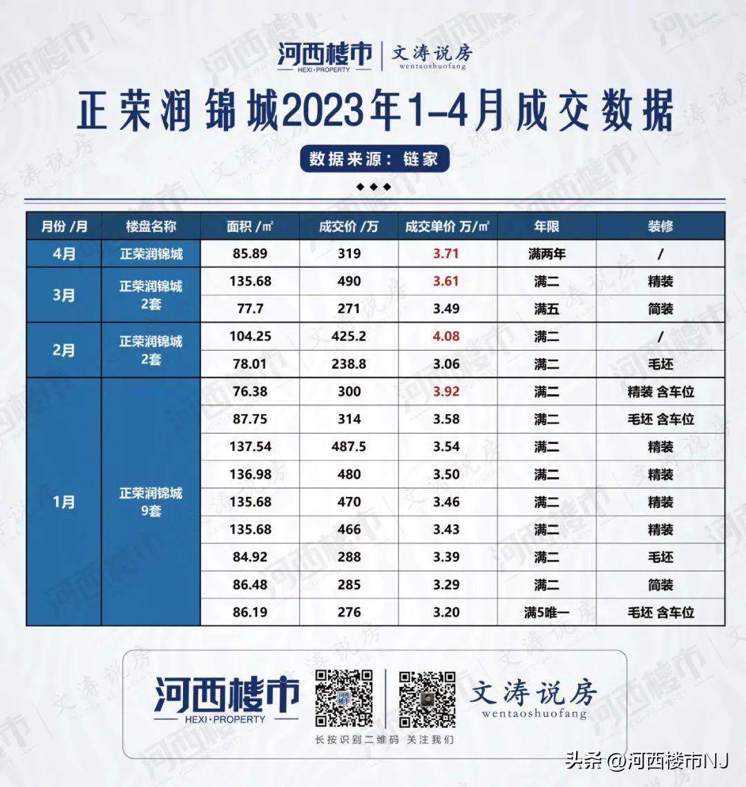 2023年1-4月,正荣润锦城共成交了14套房源。
