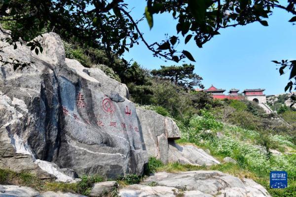 泰山“世界文化与自然遗产”石刻(5月24日摄)。