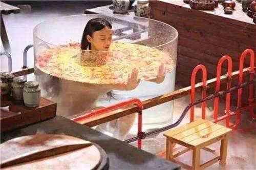 在银幕上看我们会觉得很美,像袁姗姗也曾经有沐浴的镜头,还因为花瓣的颜色,被网友调侃成西红柿鸡蛋汤。这个浴桶没有范冰冰的那么华丽,但也给广大男性同胞们无限的遐想。