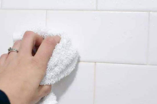 沿着发霉的墙面,由上往下轻轻一拖,拖把经过的地方霉渍就能去除。