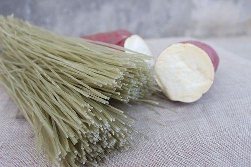红薯先被收购,再制成红薯粉,最后制成红薯粉条,红薯的出粉率比较低,能达到20%就不错了,6斤左右的红薯,能出一斤红薯粉。