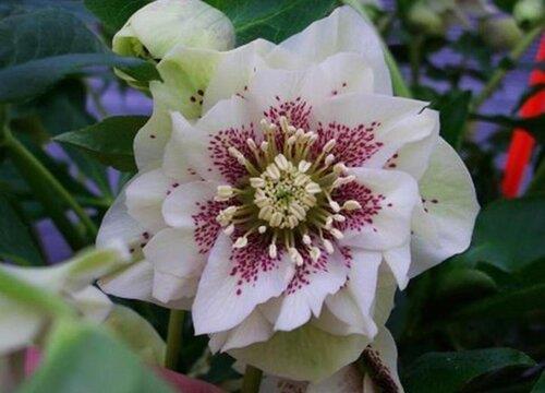 铁筷子,在圣诞节左右开花,花色艳丽,因此又叫圣诞玫瑰,极耐寒,花期很长,单朵花可以从秋天一直开到来年的春天。