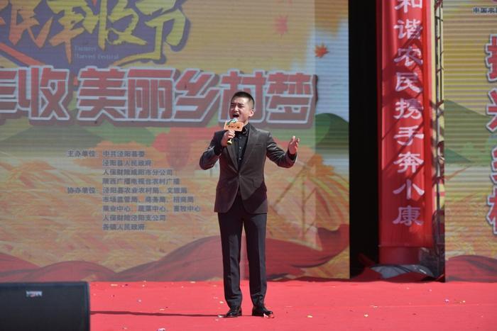金果飘香五谷丰登,泾河水畔共庆 丰收。9月19日上午,中 央广播电视总台-中国乡村之声联合陕西广电融媒体集团(台)农村广播,在泾阳县 委 县政 府和人保财险咸阳市分公司的大力支持下,共同举办的“qing丰收,迎小康”我的丰收我的节,大型农民节庆祝活动暨陕西农产品大型视频直播推介会的活动在泾阳龙泉山庄举行。活动多形态、立体式地展现新时代广大农民的新风采、农村的新面貌、农业的新发展,展现了金秋时节农民果飘香、粮满仓的丰收景象。