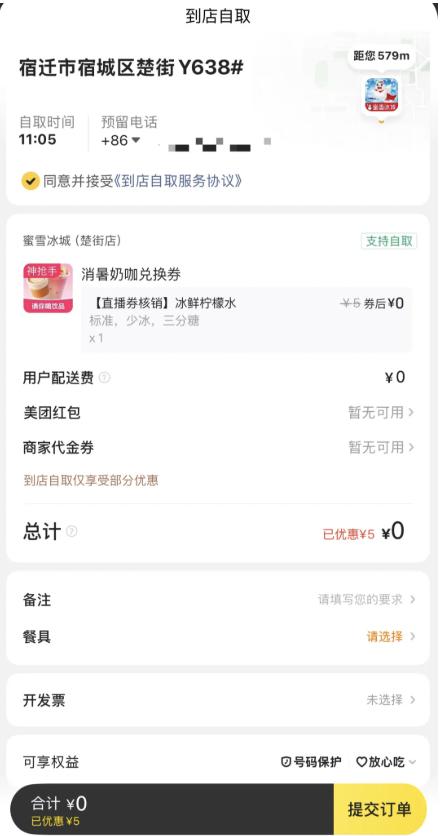 宿迁当地的 "0 元购 " 奶茶订单截图