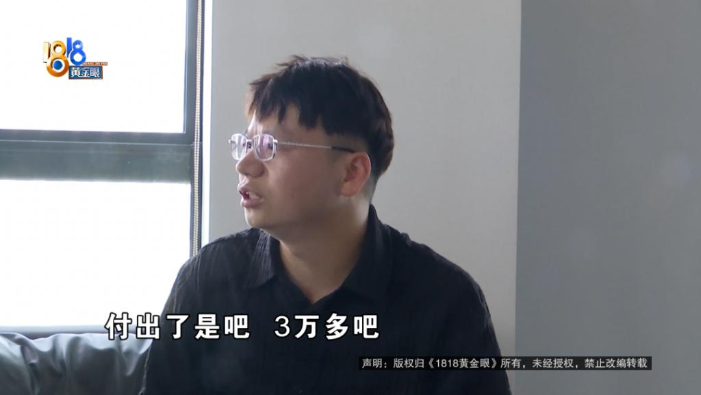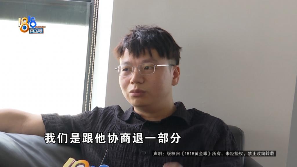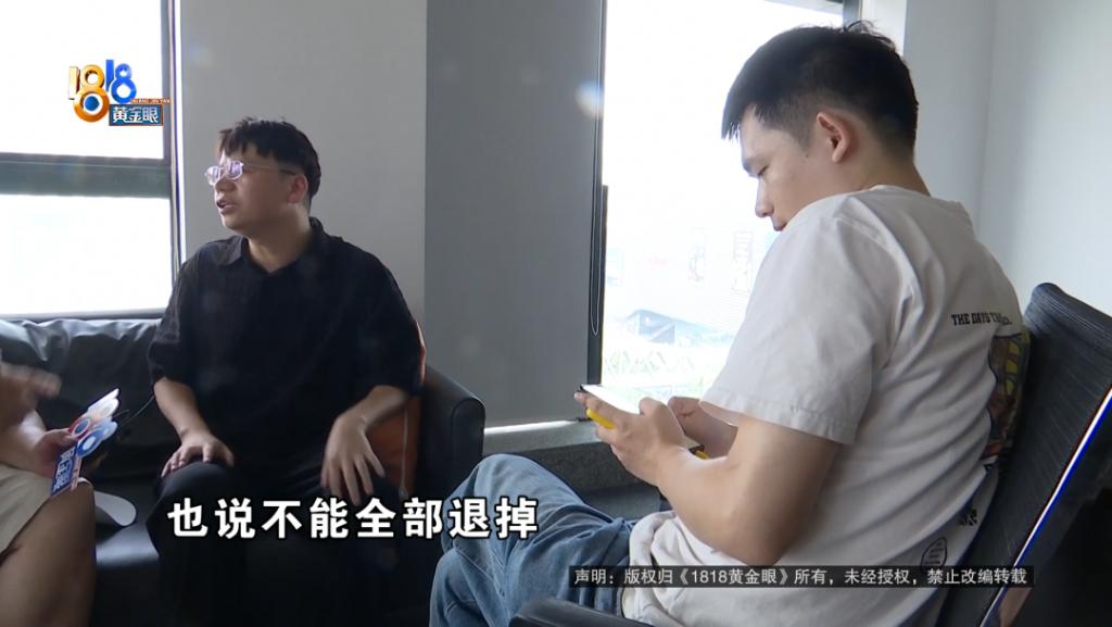 现场工作人员 小万:他的资质是达不到,贷款的要求,后面找他朋友帮他贷款,后面贷出来之后,他朋友把这个钱还掉了,但他服务费是付给我们的。那现在我们诉求,包括他的诉求的话,是想全部退掉,我们是跟他协商退一部分。
