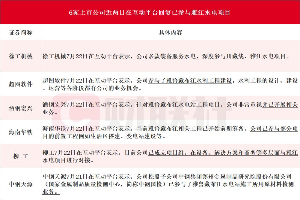 雅鲁藏布江水电工程开工 6家上市公司在互动易回应已参与相关项目