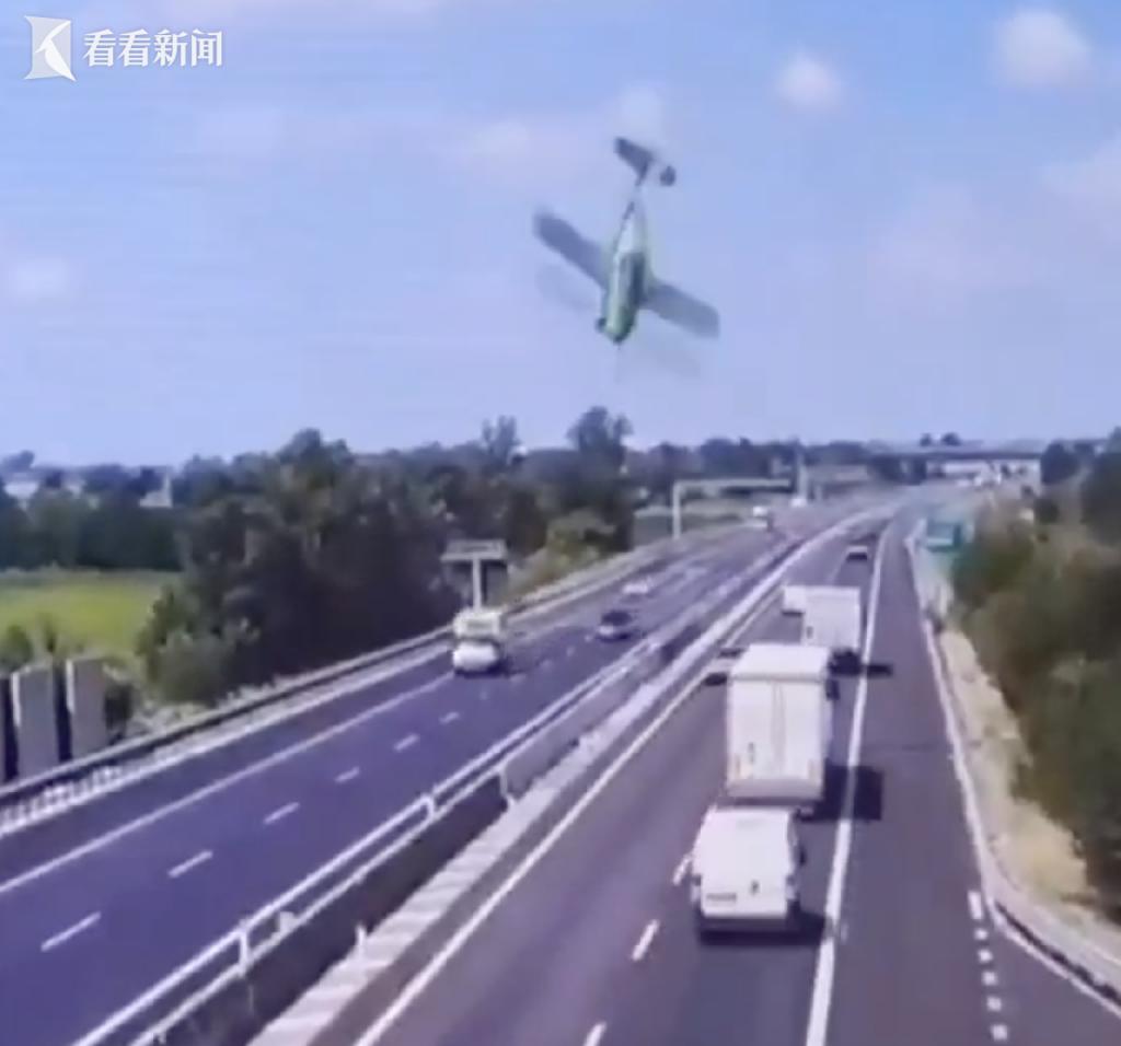 意大利一飞机俯冲坠入高速 车辆被迫冲“火墙”
