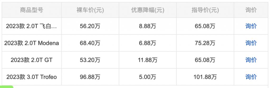 叠加贷款政策的优惠,部分地区的 Grecale 裸车价甚至低至 36 万元左右。而这一价格甚至比同型号的部分二手车还要便宜,导致有二手车商抱怨 " 被品牌方背刺 " 的奇景。