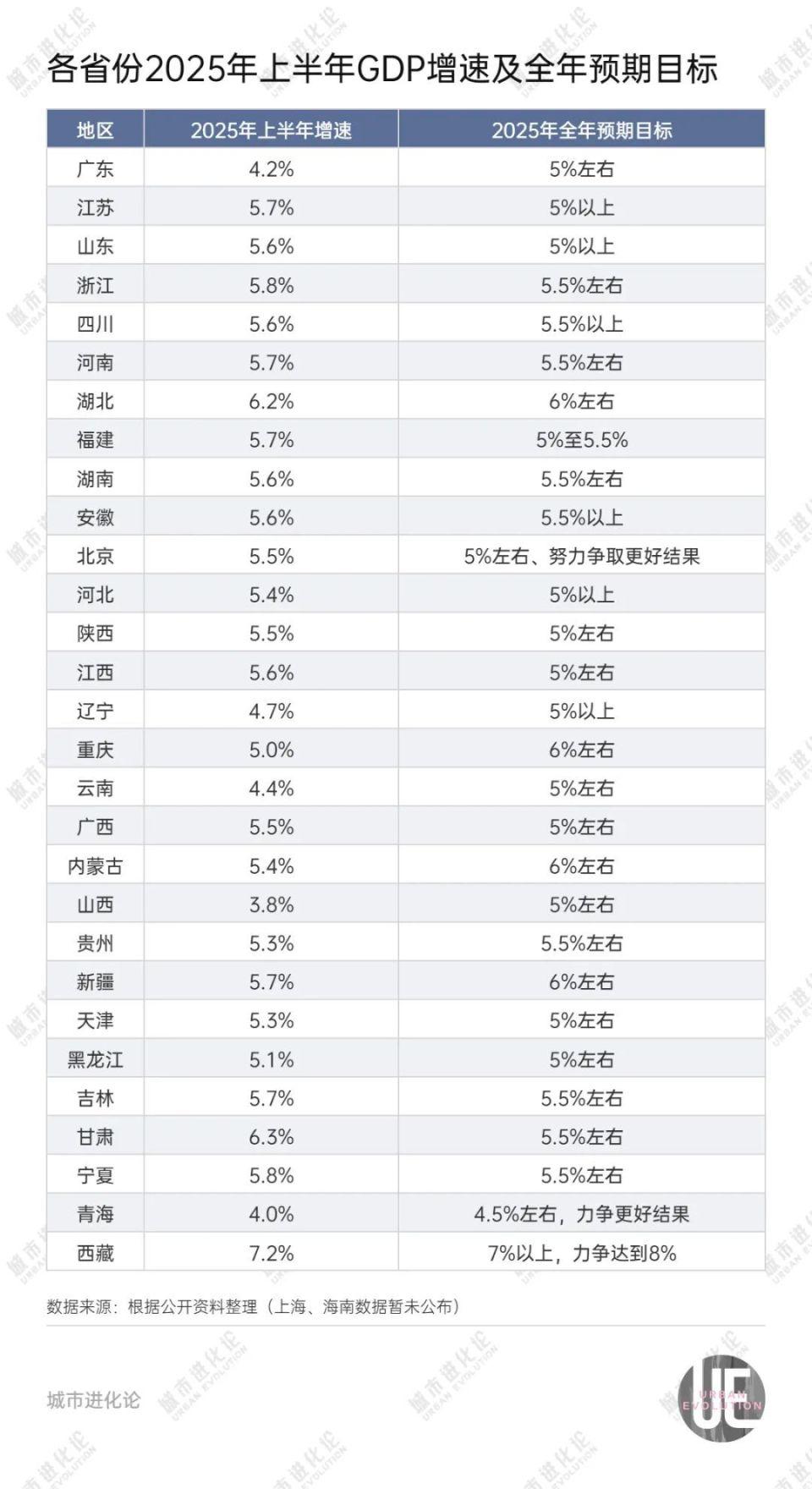 今年开年,各省份都已确定全年经济增速目标,半年过去,也是一个检验完成度的时机。根据城市进化论梳理,绝大部分省份上半年的增速达到了全年的目标值,但广东、辽宁、云南、内蒙古、贵州、青海等省份仍有差距,如需实现全年目标,下半年需全力冲刺。
