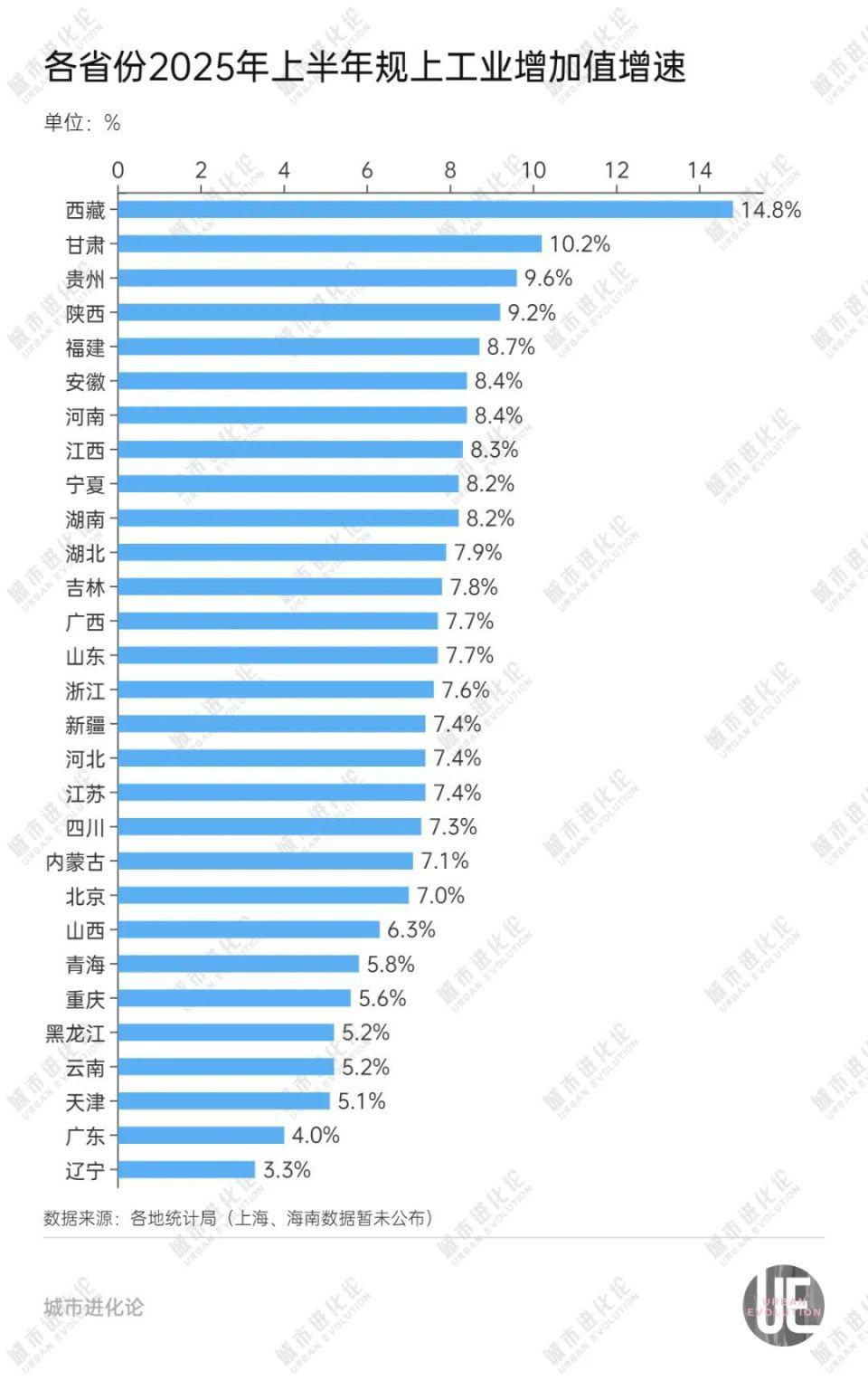 当然,西藏自身表现确实可圈可点。上半年,西藏多项主要经济指标位居全国前列,比如规模以上工业增加值同比增长 14.8%,高于全国 8.4 个百分点;固定资产投资增长 24.8%,高出全国 22 个百分点。