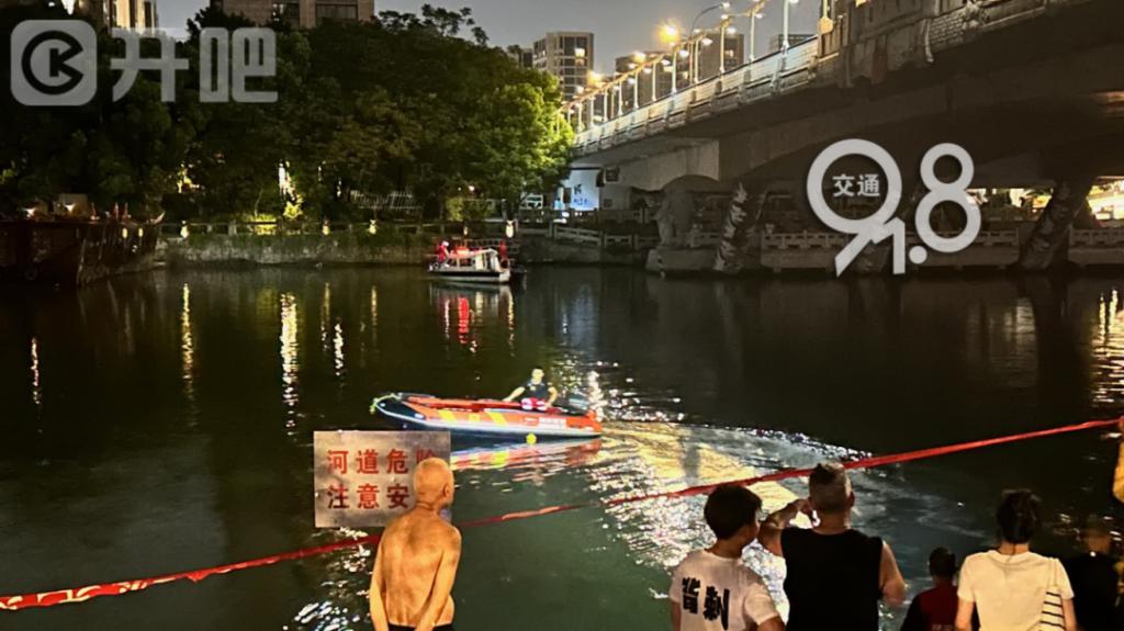 爆料人胡先生说,一对三十多岁的夫妻在登云桥上发生了争吵,男子情绪比较激动,直接跳了下去。" 昨晚十点左右,我看到现场有公安、水警和民间救援组织正在组织搜救。岸边都拉起了警戒线,写着‘河道危险,注意安全’的警示标语。" 胡先生说。