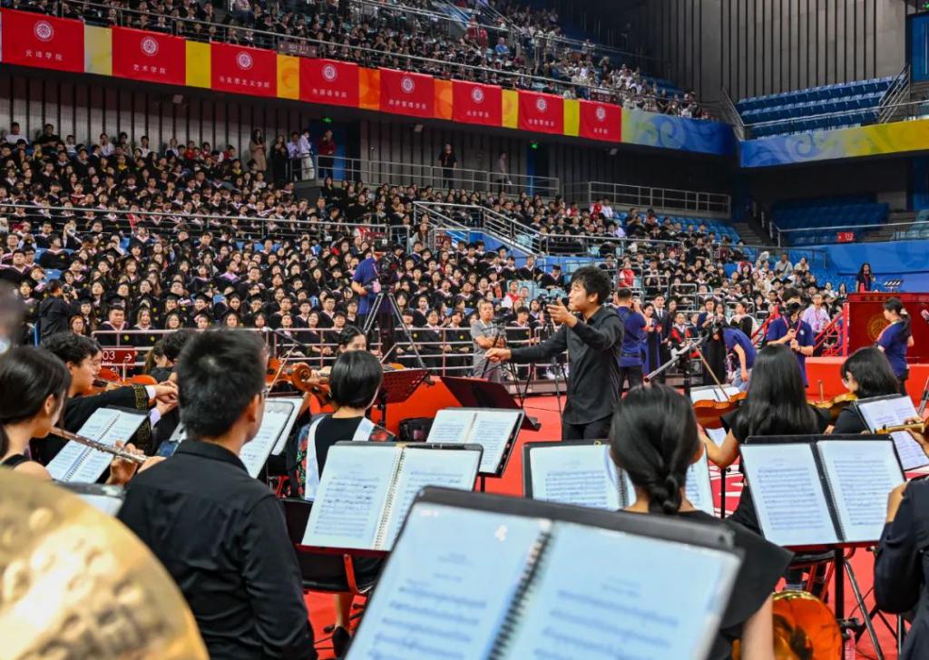 7 月 2 日,北京大学学生交响乐团在毕业典礼上演奏 / 新华社记者陈朔 摄