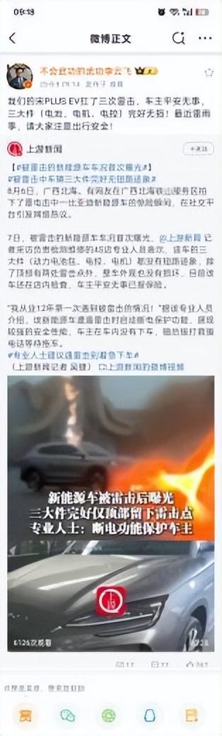 这次广西北海宋 PLUS EV 连扛三道闪电护航车主安全的事情,也再次印证了比亚迪一直贯彻 " 安全是电动车最大的豪华 " 这个理念。