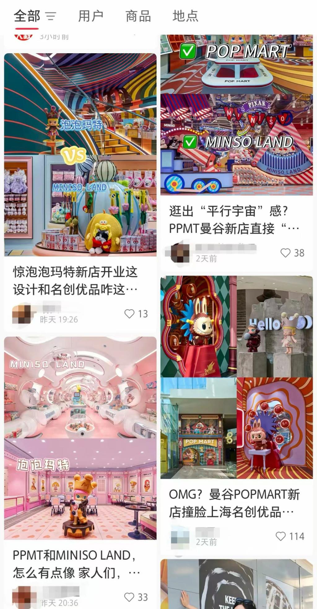 质疑泡泡玛特泰国旗舰店与名创优品 MINISO LAND 全球壹号店相似的博文