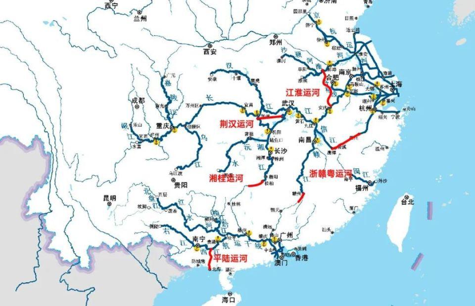当前,安徽江淮运河已正式开通,广西平陆运河在建,而浙赣粤运河、湘桂运河、荆汉运河,尚在筹划中。