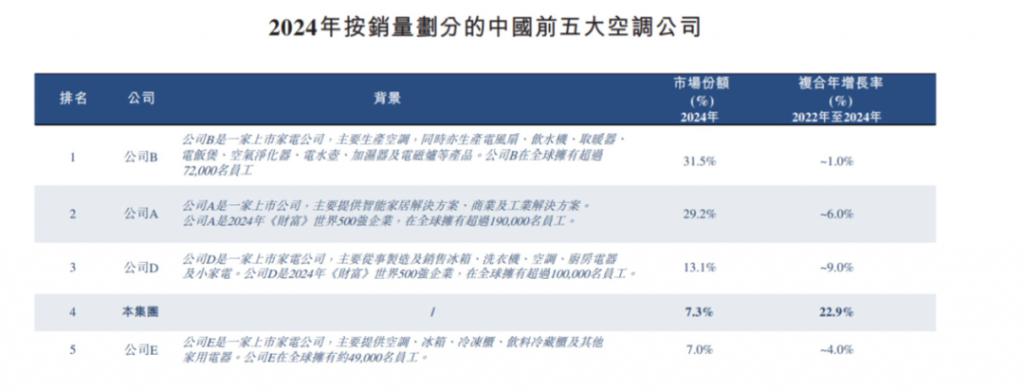 弗若斯特沙利文资料显示,2024 年按销量划分的中国前五大空调公司,奥克斯排名中国第四,市场份额为 7.3%
