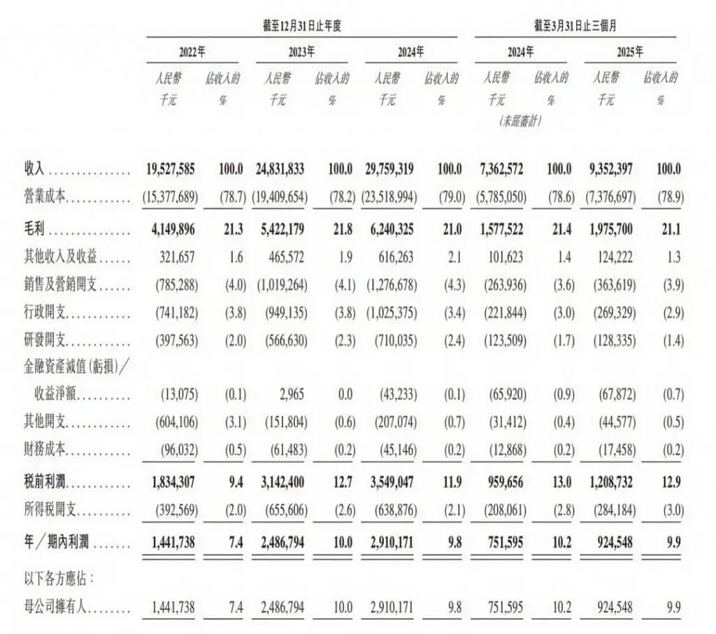 翻开招股书一看,2022 年到 2024 年,奥克斯的收入从 195 亿涨到 298 亿,三年涨了 52.8%。净利润更猛,从 14.4 亿飙到 29.1 亿,三年直接翻倍,增长 102%。