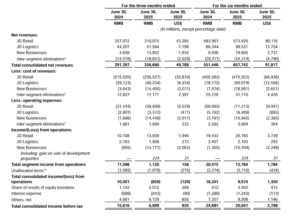 京东Q2净营收同比增长22.4%超预期,净利润跌超50%