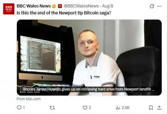 2021 年,为了打动市民支持,他提出——如果挖到硬盘,会拿出 25% 的比特币分给纽波特市民,人均约 175 英镑。