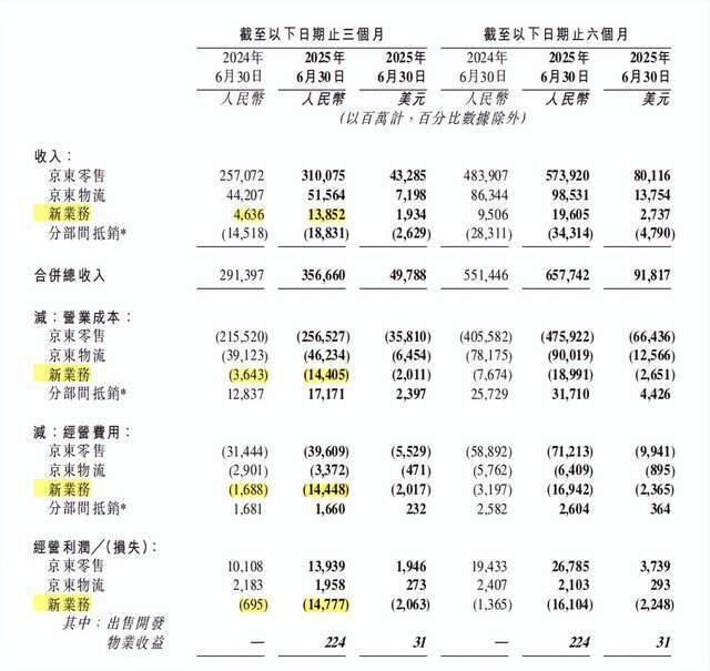 今年 2 月以来,京东开始大力加码外卖业务,3 月 1 日正式上线外卖业务,从此前发布的 2025 年一季报来看,对比 2024 年同期,新业务成本和费用分别增加 6 亿元和 10 亿元,亏损扩大 6 亿元。