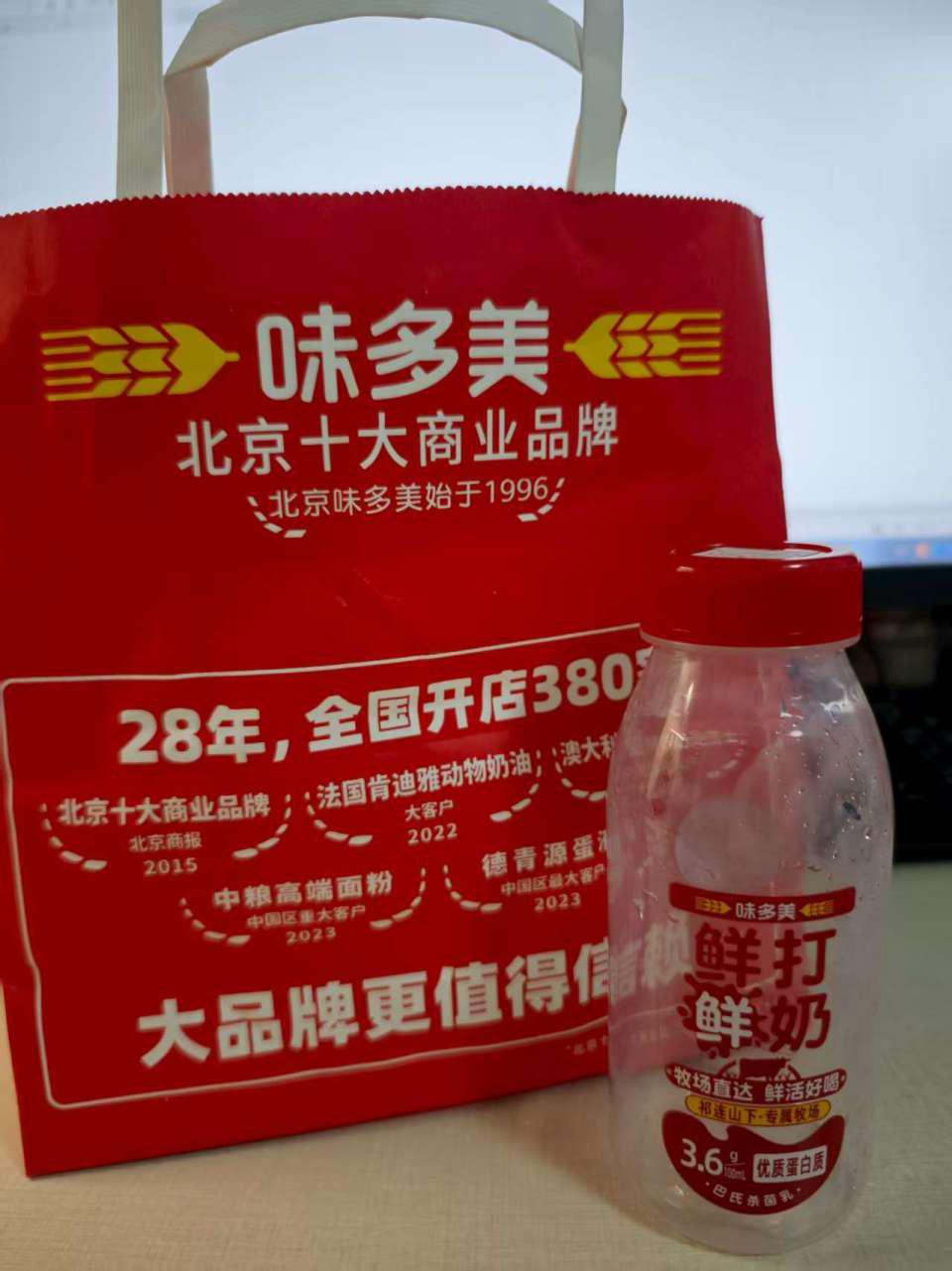 味多美门店现打鲜奶配备的塑料奶瓶及纸质包装袋。 新京报首席记者 郭铁 摄