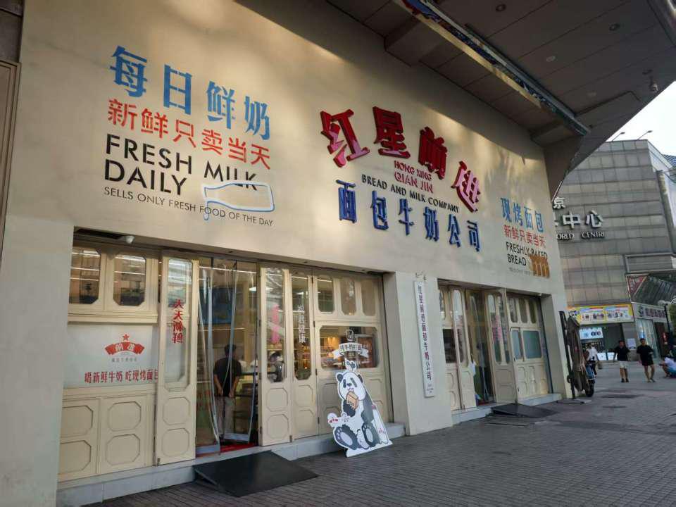 红星前进面包牛奶公司门店打出 " 每日鲜奶 " 招牌。 新京报首席记者 郭铁 摄