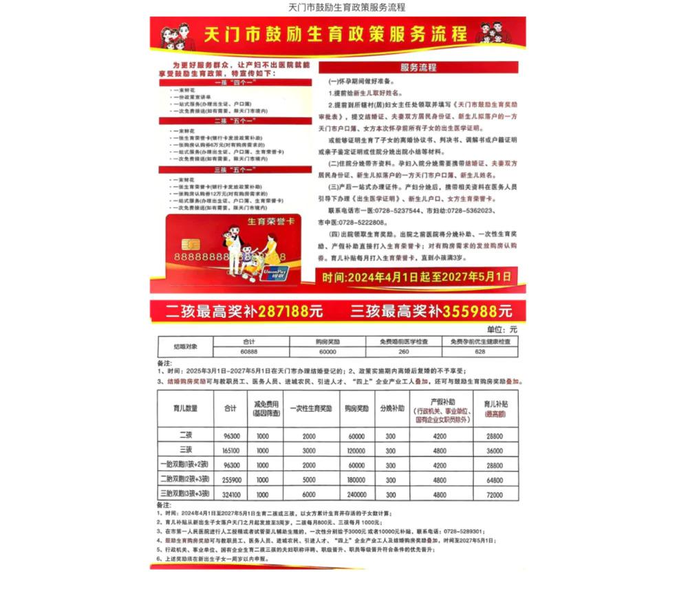 从全国范围内看,在 20 多个已出补贴政策的省市中,天门的生育支持力度堪称 " 天花板 "。
