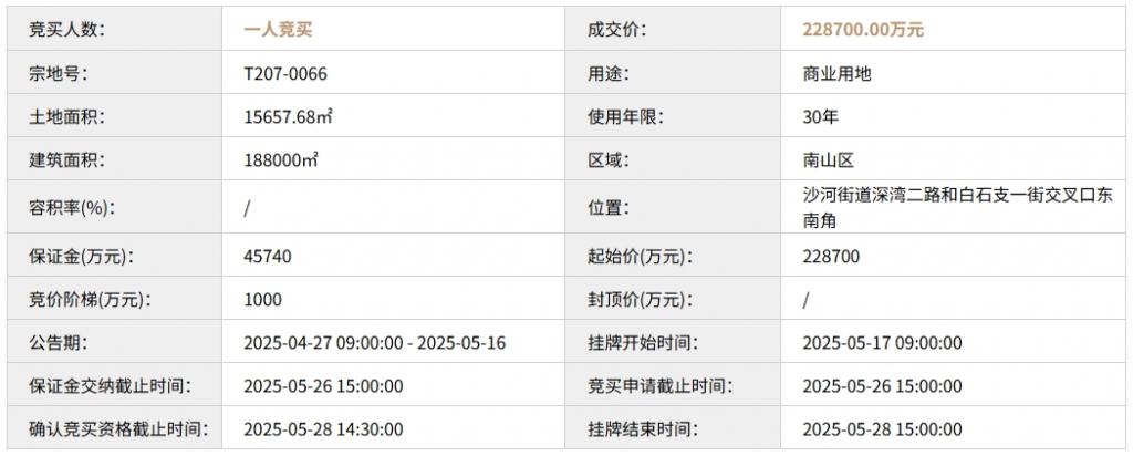 大疆今年 5 月底以 22.87 亿元的价格,拿下了深圳市南山区沙河街道 T207-0066 地块,用于建设智能航空系统产业生态全球总部项目。