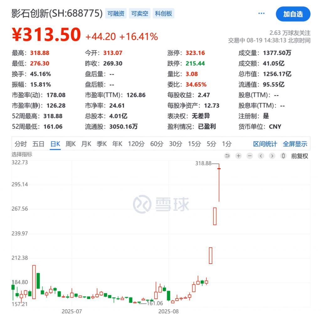 互联网还没有从影石创始人刘靖康撒钱的舆论当中清醒过来,影石已经在 8 月 18 日开盘后再度迎来涨停,并在 19 日继续大幅上涨,市值突破 1200 亿元。