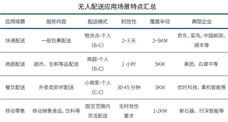 无人物流配送车目前大规模落地场景为快递末端配送中的 " 网点到驿站 " 段。